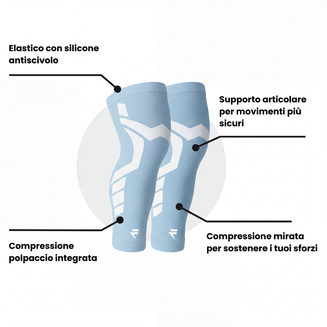 Supporti compressivi di nuova generazione, progettati per offrire un supporto ottimale e accompagnare le tue prestazioni a lungo termine.